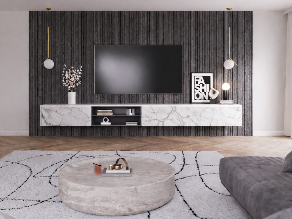 Een zwevend tv-meubel op maat creëert een ruimtelijk effect doordat deze boven de vloer hangt. Elke kast wordt 100% op maat gemaakt, passend bij jouw wensen, stijl en afmetingen.