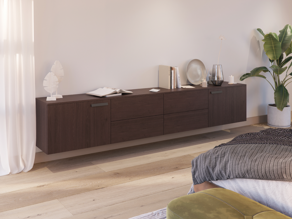 Creëer een luchtig en modern interieur met een zwevend meubel op maat van Kastengigant. In onze online configurator ontwerp je eenvoudig een zwevend meubel dat exact voldoet aan jouw wensen qua afmetingen, kleur en functionaliteit. Of je nu een minimalistisch tv-meubel of een ruimtelijk dressoir zoekt, jij hebt de volledige controle over de indeling met kleppen, lades of open vakken.