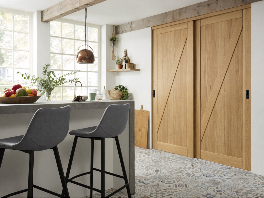 Barn schuifdeuren geven je interieur een stoere en karaktervolle uitstraling. Het robuuste ontwerp en de zichtbare houtstructuur zorgen voor een warme, landelijke sfeer, terwijl het schuifsysteem een praktische en ruimtebesparende oplossing biedt.
