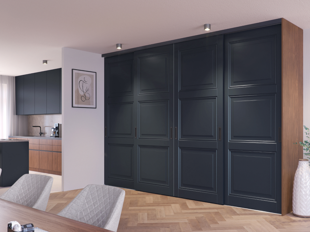 Onze klassieke paneeldeuren passen perfect bij je kledingkast. Onze hoogwaardige schuifdeursystemen werken geruisloos. Je stelt jouw unieke kast op maat eenvoudig samen. Elke schuifdeur wordt met veel vakmanschap gemaakt.